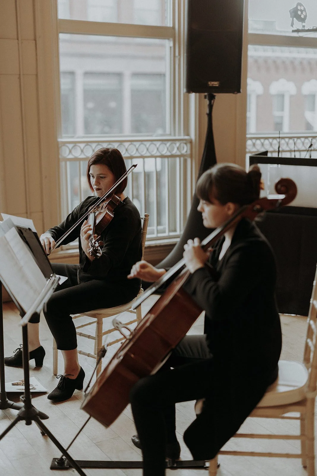 “We could not be happier with their performance! They were extremely professional and organized, and communicated directly with our vocalist to arrange the ceremony music (which meant less work for me)! We would highly recommend them to anyone looking for a polished and talented string quartet.”